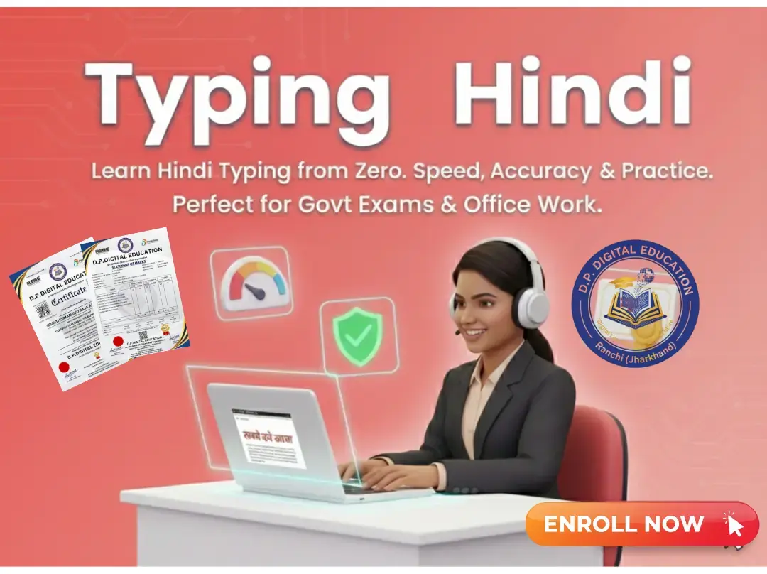 Typing in English सिखने से आप कंप्यूटर पर तेज़ और सही टाइपिंग कर पाएंगे। यह मॉड्यूल आपकी स्पीड और Accuracy दोनों को बेहतर बनाता है। Regular Practice से आप Professional Typing Skills Develop कर सकते हैं यह कोर्स Data Entry Operator, Computer Operator, Office Assistant, सरकारी और प्राइवेट जॉब्स के लिए बहुत उपयोगी है।