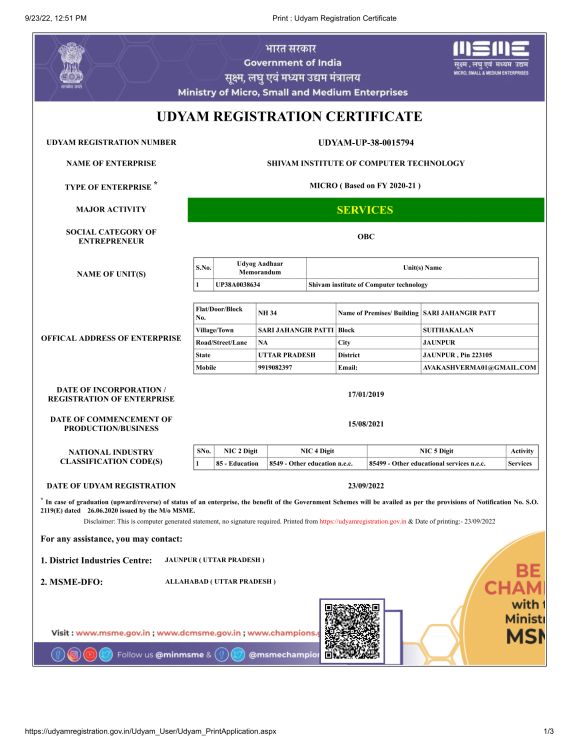 Welcome to Shivam Institute of Computer Technology